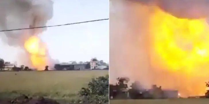 Imágenes difundidas por el canal de televisión delhí NDTV muestran una enorme columna de humo y fuego alrededor de la fábrica mientras se escuchan varias explosiones.