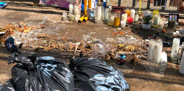 Frente a la mirada atónita de familiares y amigos de las víctimas que visitaron el lugar para recordar a sus seres queridos, fueron removidos los restos de las velas, hasta el momento la alcaldesa del Distrito Nacional, Carolina Mejía no se ha pronunciado al respecto.