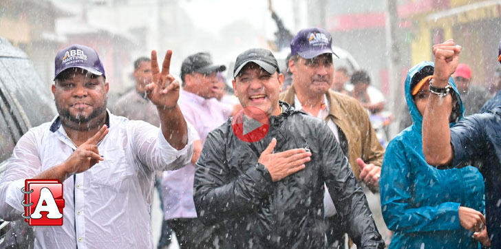 Junto a Abel Martínez estuvieron, su compañera de boleta, Zoraima Cuello, la esposa del candidato, Nahiony Reyes, el candidato a senador de la provincia Duarte, Luis Yanguela, el diputado y candidato a esa posición Yenrry Acosta y otros.