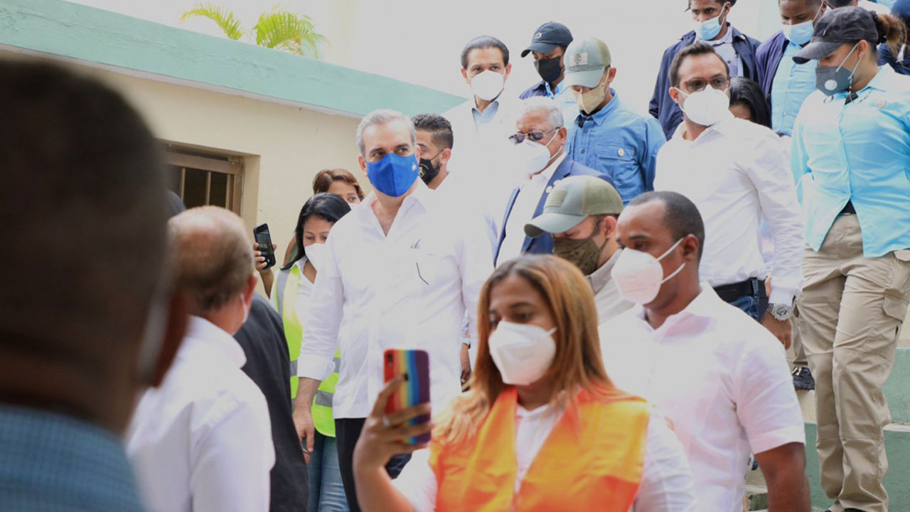 Abinader continuó este domingo visitando los centros de vacunación del Materno Infantil, Los Gringos, en la calle Norma Ruiz, de San Cristóbal.