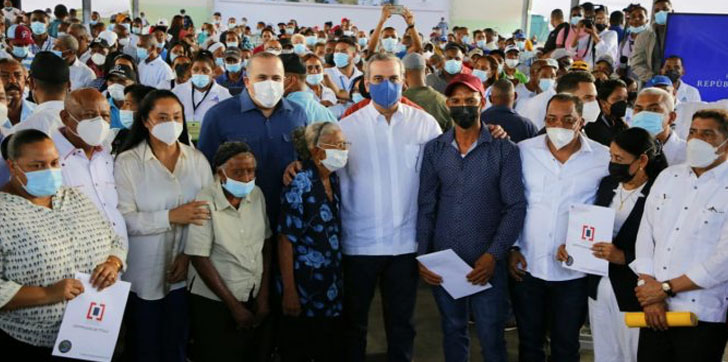 “A esto, debemos sumarle otros beneficios como la seguridad jurídica de su parcela o vivienda, el incremento del valor de sus inmuebles, y que podrán en adelante acceder al crédito formal a través de las entidades financieras del mercado, entre otros beneficios”, manifestó el presidente Abinader.