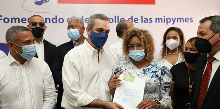 Abinader entregó montos en cheques por 150 mil y 200 mil pesos a propietarios y promotores de pequeñas y medianas empresas y micro negocios, en la Alcaldía local.