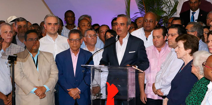 El discurso se produjo luego de que Abinader y dirigentes de los partidos aliados hicieran deliberaciones en una reunión a la que asistieron, entre otros, el ex presidente Hipólito Mejía, la ex vicepresidenta Milagros Ortiz Bosch, Sonia Guzmán, Roberto Fulcar, coordinador general de campaña, Lisandro Macarruya, Manuel Jiménez y José Andújar, candidatos a alcaldes de Santo Domingo Este y Oeste.