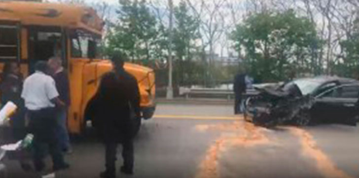 Según las autoridades, 29 niños y 1 adulto sufrieron heridas menores tras el choque entre el bus y un vehículo.