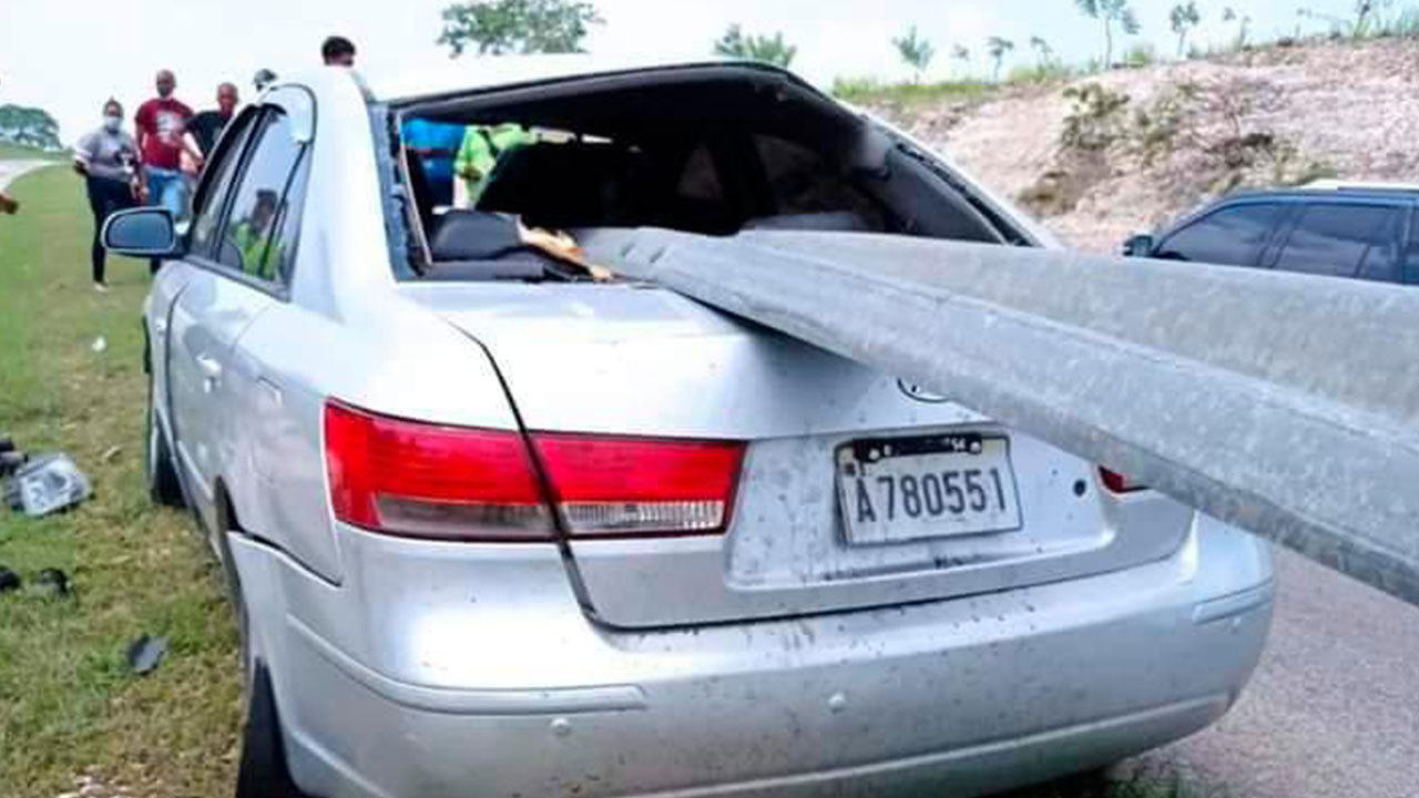 AGENDA56, LA ROMANA.- Una mujer falleció y su esposo resultó herido este sábado en la Autovía El Coral, cuando el vehículo en el que se desplazaban se deslizó y se estrelló con una barandilla que divide la vía, la cual atravesó el vehículo.