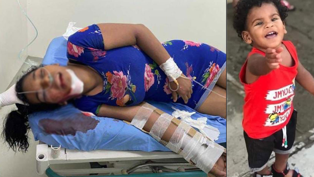 La herida, identificada como Patricia Peña, de 25 años de edad, fue trasladada a un centro de salud privado donde recibe atenciones médicas tras sufrir una rotura en el brazo derecho y fuertes golpes en el rostro, mientras que el niño fue llevado con fuertes golpes a la maternidad Doctor José Francisco Peña Gómez de esta ciudad, donde falleció mientras recibía atenciones médicas.