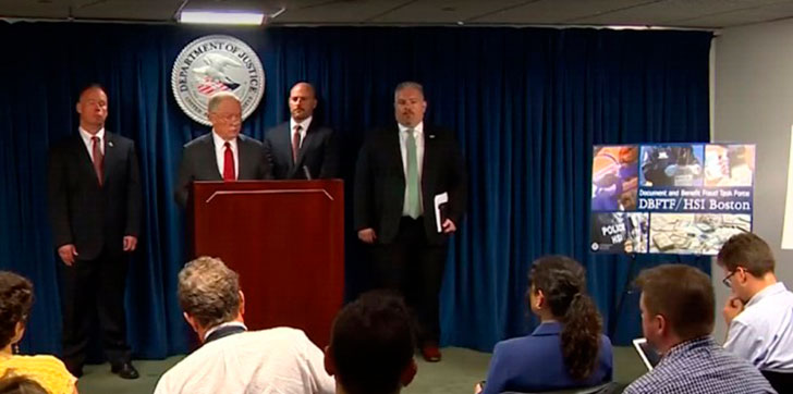 El anuncio oficial de las acusaciones fue hecho ayer jueves en Boston por el Secretario de Justicia de Estados Unidos, Jeff Sessions y otros altos funcionarios federales.
