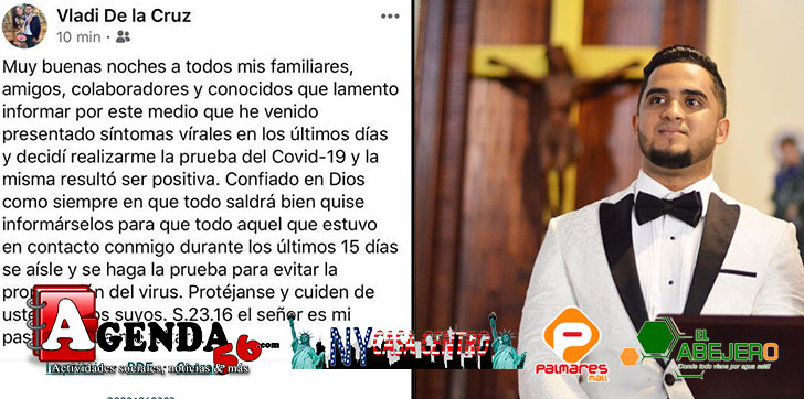 “Familiares, amigos, colaboradores y conocidos lamento informar por este medio que he venido presentando síntomas virales en los últimos días y decidí realizarme la prueba del Covid-19 y la misma resultó ser positiva.” escribió De la Cruz en la plataforma.