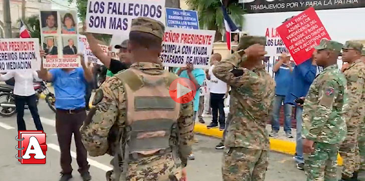 Los afectados, pese a la intervención de militares, se concentraron en la calle Restauración, próximo al parque Duarte, exigiendo que se profundicen las investigaciones del hecho y que los integrantes de la familia Munné sean judicializados.