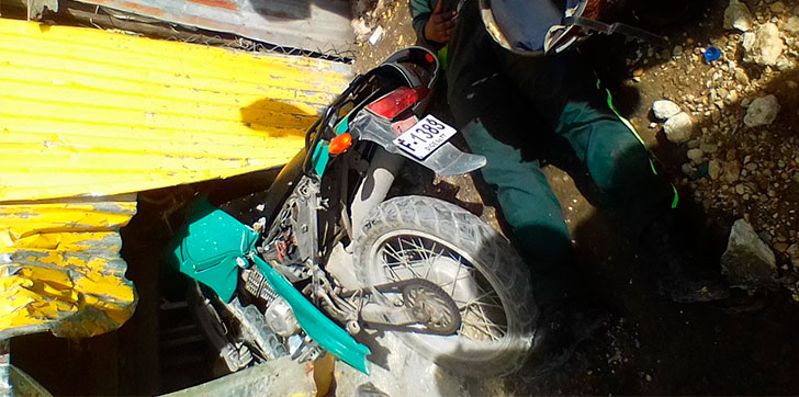 Agente DIGESETT sufre accidente en su motocicleta y choca contra negocio