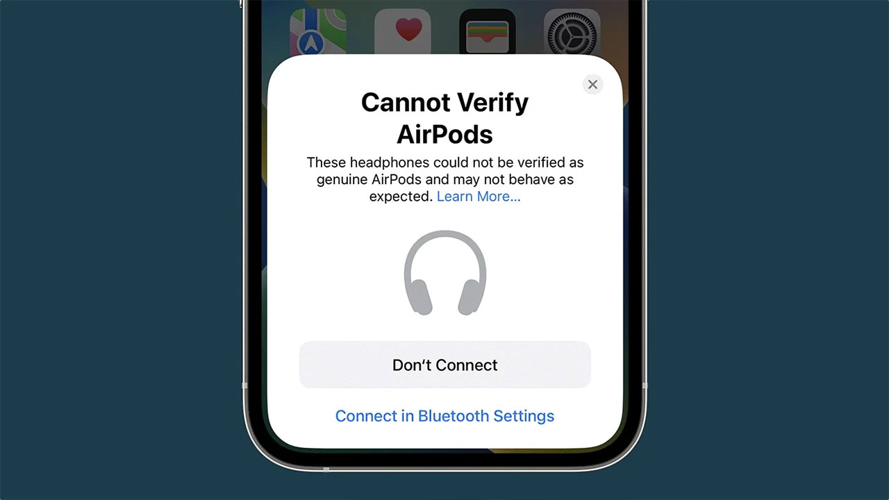 Según una nueva entrada publicada el lunes en la web de soporte de Apple, se trata de un mensaje de alerta que puedes recibir cuando intentas conectar unos AirPods no originales a un iPhone, un iPad o un iPod Touch.