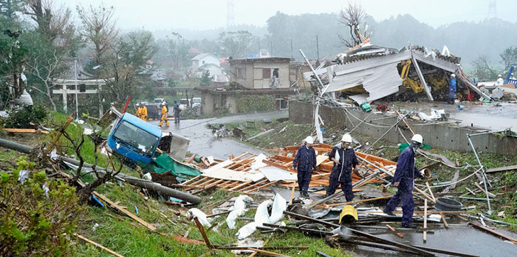 La tormenta, acompañada de lluvias de una intensidad «sin precedentes», sembró la desolación al pasar por el centro y el este de Japón entre la noche del sábado y la madrugada del domingo.