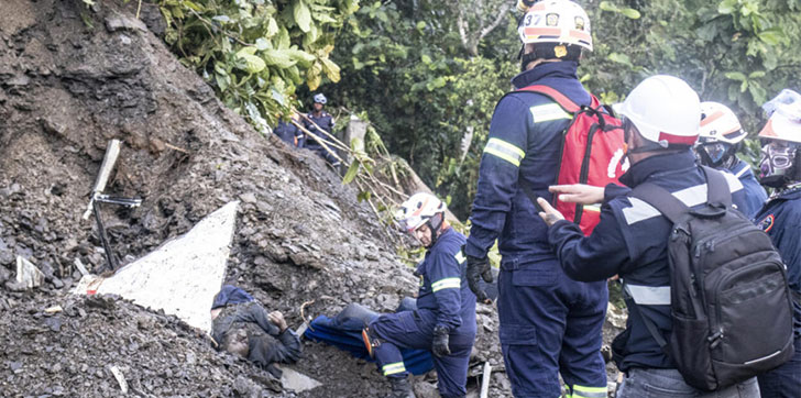Parte de una montaña se desprendió, cayó en la carretera y “sepultó a un vehículo de servicio público con 33 personas a bordo, un carro particular con seis pasajeros y una motocicleta con dos ocupantes”, añadió.