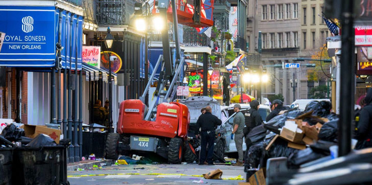 La superintendente de la policía, Anne Kirkpatrick, dijo en la misma comparecencia que el atentado se produjo a las 3:15 hora local (09:15 GMT), y que un hombre condujo una camioneta «por la calle Bourbon a un ritmo muy rápido».