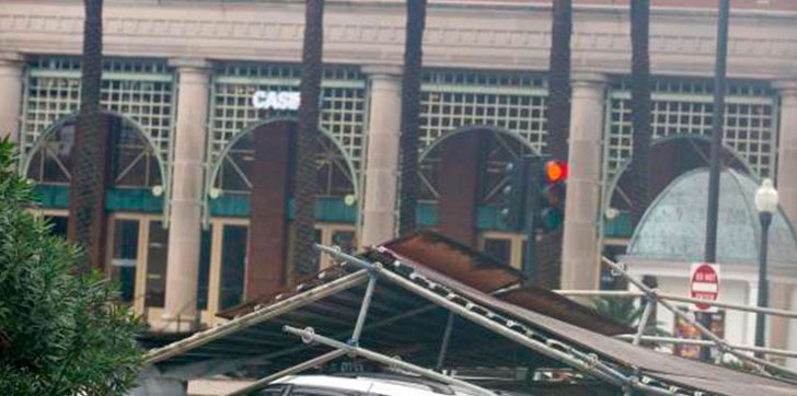En Nueva Orleáns, debido a los fuertes vientos, colapsó el andamio alrededor de un hotel, que aplastó varios automóviles y causó heridas a una persona. Cayó granizo en el distrito financiero de la ciudad y los vientos reventaron dos puertas de vidrio.