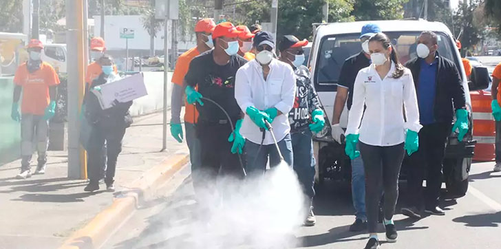 Alcaldía de Santiago limpia y desinfecta en calles y avenidas