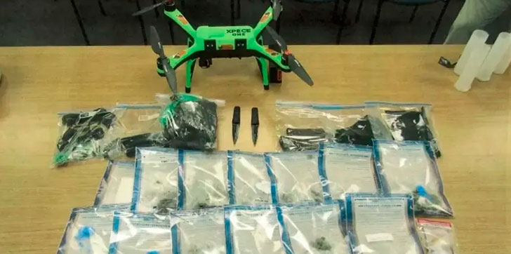 NEW YORK.- Un dron lanzó desde el aire un paquete con cuchillos, drogas y artículos de higiene personal en los terrenos del Centro Correccional Marcy, en el norte del estado de Nueva York, el pasado fin de semana.