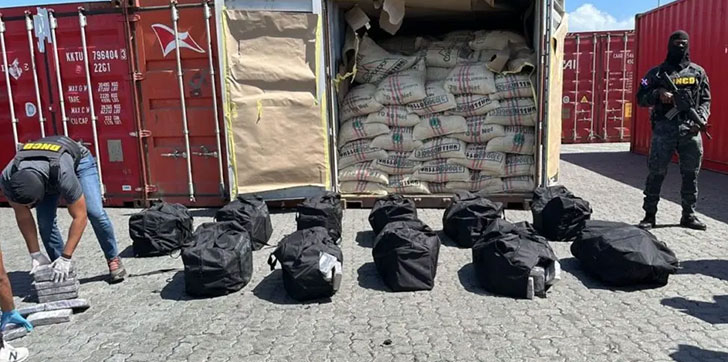 El domingo, en otro contenedor que llegó de tránsito de dio Puerto desde Colombia rumbo hacia Bélgica, las autoridades con encontraron la cantidad de 419 paquetes de cocaína camuflados en varios sacos de café, los cuales estaban herméticamente sellados.