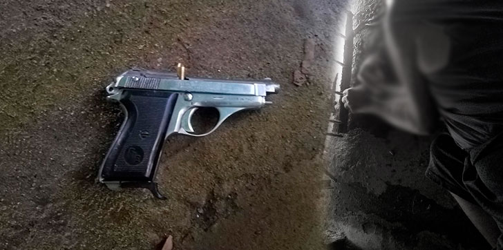 Junto al cuerpo que presenta herida de entrada y salida en la cabeza, fue hallada una pistola calibre 380, sin ningún tipo de documentos y varios casquillos para la misma.