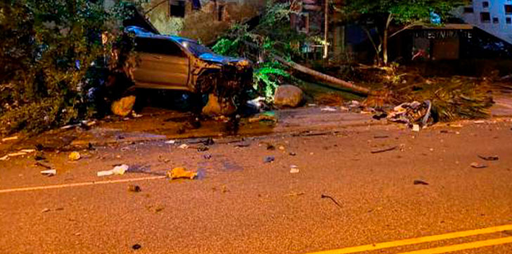 Un accidente de tránsito se produjo la noche de este sábado en la avenida Anacaona, en el Distrito Nacional, pasadas las 10:00 de la noche, en horario del toque de queda.