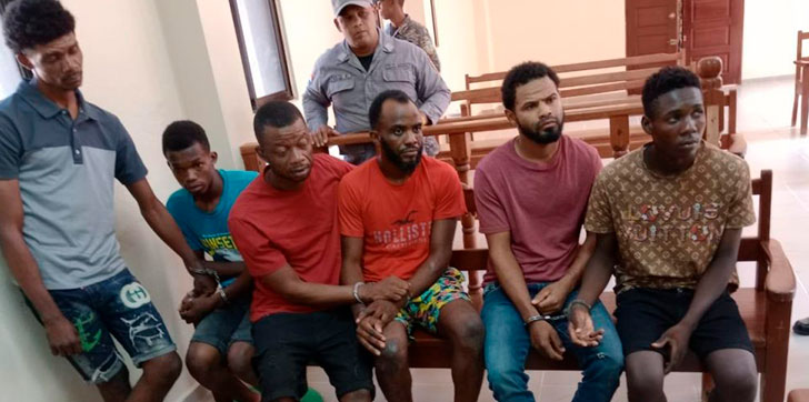 El Ministerio Público presentó la acusación contra los haitianos FRANDY LUIMENES, HEBINICE JIKEN, WELIS YAN, PACHECO BELTRAN, MOSO OLUZ y el dominicano ADONY FLORES MORILLO, en medio de estrictas medidas de seguridad.