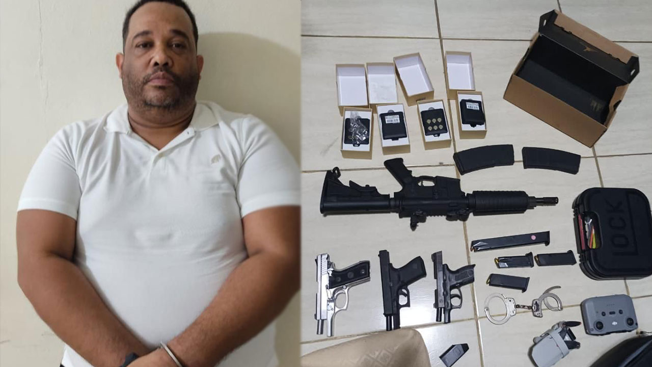 Luego, mediante orden de allanamiento en su residencia ubicada en el municipio de Tamboril, Santiago, en compañía de representantes del Ministerio Público, fueron ocupados un fusil con dos cargadores de 30 cápsulas, cuatro GPS portátiles, tres pistolas con su cargador y 22 cápsulas, un cargador adicional con 30 cápsulas, un par de esposas, tres celulares de distintas marcas y un dron.