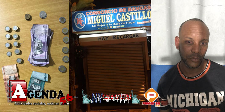 Ambos sujetos habían sustraído de la Banca de Lotería D.H.J, propiedad de José Manuel Encarnación la suma de $ 2,405 pesos en efectivo en monedas y papeletas, a quien también se le ocupó un cuchillo con el cabo negro de 5 pulgadas, una cartera de color negro y una motocicleta de color blanco chasis no legible, en cuanto a este será enviado al departamento correspondiente para los fines legales.
