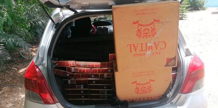 El alistado conducía un carro Toyota, modelo Vitz, color gris, cuando fueron encontradas en el interior del mismo, las cajas con los cigarrillos marca Capital, que suman un total de 59,400 unidades.