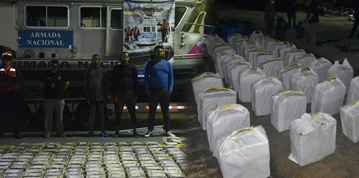 COLOMBIA- Más de una tonelada de clorhidrato de cocaína fue incautada por unidades de la Armada de Colombia, logrando la detención de una embarcación sospechosa que se desplazaba en el área con destino a “un puerto en República Dominicana”.