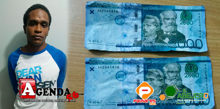 Se trata de Luis Alberto Figueroa Polanco de 27 años de edad, quien fue sorprendido en flagrante delito, momentos en que intentaba cambiar unas papeletas falsas en un colmado ubicado en la C/ Principal de la sección La Pascuala del referido municipio.
