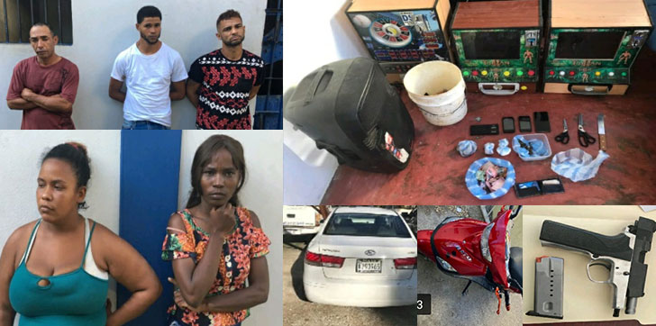 SAMANÁ.– La Policía Nacional, en conjunto con el Ministerio Público, el DICRIM y DINTEL, apresaron a cinco personas y ocuparon varias drogas en un operativo en el municipio Las Terrenas, provincia Samaná.