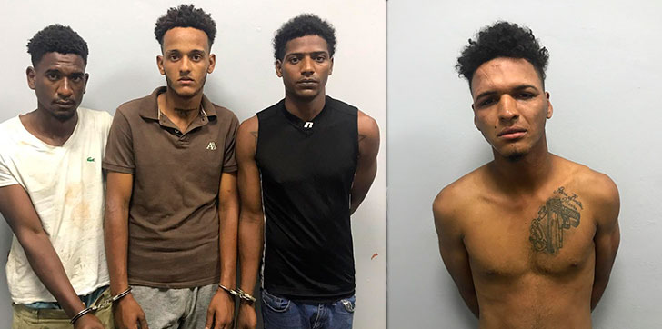 Los prevenidos fueron identificados como Emmanuel De Jesús Jiménez Hernández de 19 años, Anderson Manuel De La Cruz de 26 años, Yeison Antonio Alcantara de 23 y Geury Rodríguez Batista de 20 años de edad, quienes son señalados como los presuntos autores del despojo de una escopeta a un agente de seguridad de una gasolinera.