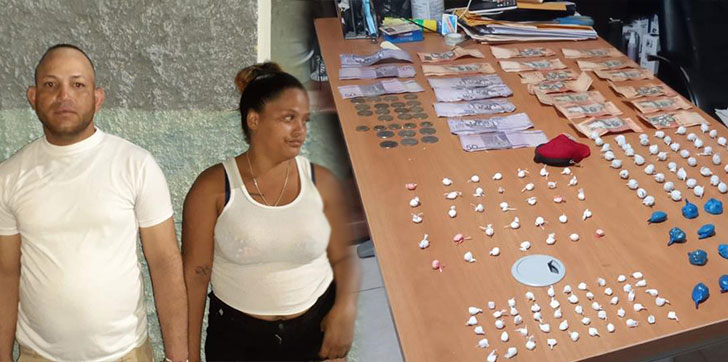En el sector Las 300 de Mao, fueron apresados José Rafael Peña Pérez y Maribel García Mendoza, de 32 y 26 años de edad, respectivamente, sorprendidos con 35 porciones del polvo blanco, 75 porciones del vegetal verde y 50 porciones del material rocoso.