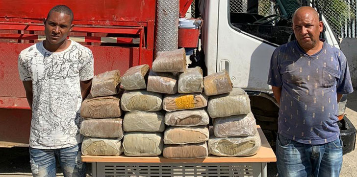 A los prevenidos, quienes se desplazaban en un camión, se les ocupó 19 paquetes de drogas, con un peso de 15 libras.