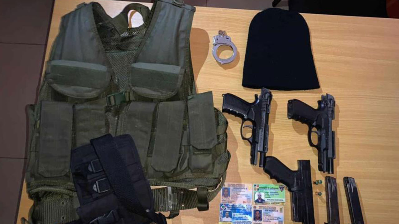 En tanto que el segundo poseía un carné de la Academia G:F:A:M:, Brigada de Operaciones, con rango de primer teniente, un arma de choques eléctrico, un par de esposas y un chaleco multiuso color verde, así como armas no letal (de fogueo), con marca y numeración ilegible y sin documentos hasta el momento.