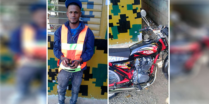 El detenido es Hiraldo Antonio Verás Parra, quien había sido denunciado por sustraer la motocicleta de la marca Gato, de color negro con el chasis rojo.