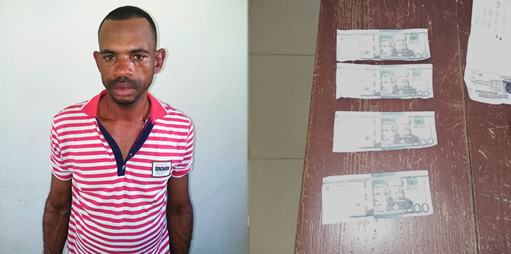 DAJABÓN.- Miembros de la policía preventiva perteneciente a la dotación de este municipio fronterizo, apresó en la tarde de este sábado a un individuo cuando supuestamente estafaba negocios utilizando dinero falsificado.