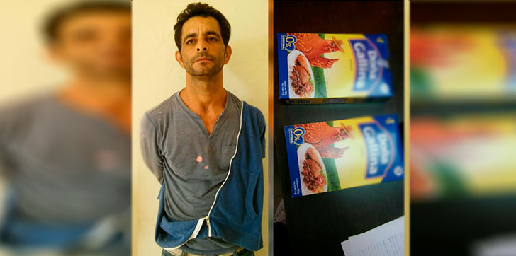 Se informó que Elvis fue descubierto por el personal del supermercado, y al ser requizado le fueron descubiertas las cajas en el interior de su vestimenta.