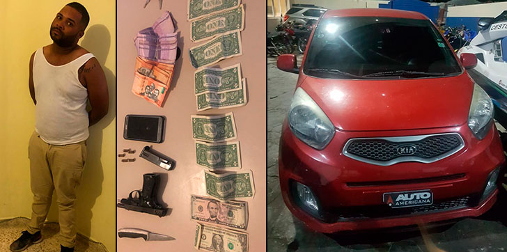 Al mismo le fue ocupada la pistola marca Browning, calibre 380, con 5 cápsulas para la misma, un cuchillo, la suma de $950 pesos dominicanos y 14,000 dólares americanos, sustraídos en el atraco.