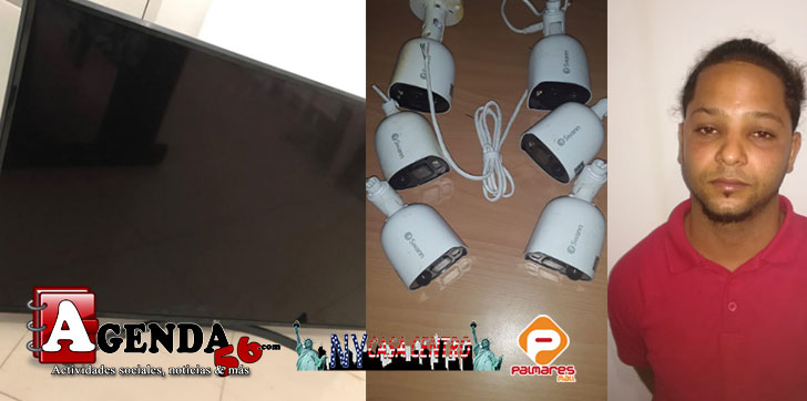 Rowdy de la Rosa se le acusa de penetrar a la villa La Paz, con tres elementos más, donde sustrajeron un televisor marca LG de 55 pulgadas y seis cámaras de seguridad y el DVR los cuales se recuperaron en manos del detenido por agentes de la Dicrim.
