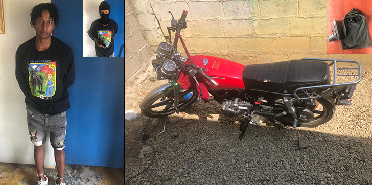 AGENDA56, VALVERDE– Un joven de 18 años de edad fue apresado con una pistola de juguete y un pasamontañas, luego de haberse robado, junto a otro individuo, prófugo, una motocicleta que fue recuperada momentos después, durante una persecución policial.
