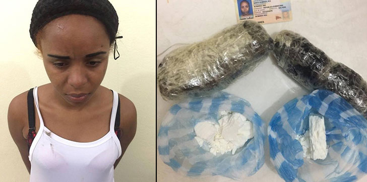 AGENDA56, SANTO DOMINGO.- Agentes penitenciarios detuvieron una joven de 28 años que intentaba entrar dos porciones de un vegetal presumiblemente Marihuana con un peso aproximado de 1 libra y dos porciones de un polvo blanco que aparenta ser cocaína con un peso de 81.3 gramos dentro de una funda al penal de La Victoria.