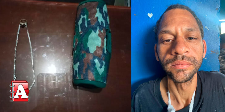 La policía recuperó una bocina, una cadena y un anillo que el sujeto había sustraído de la vivienda de la señora Mildred Altagracia Lantigua Mejía.