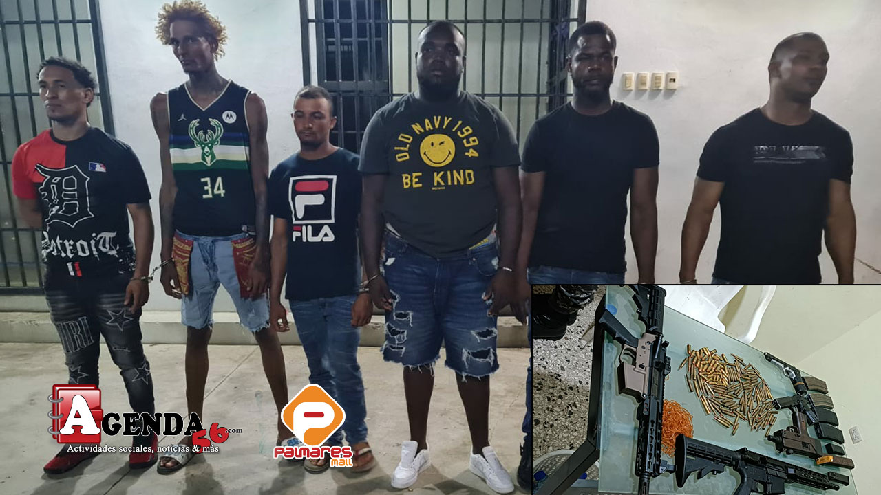 AGENDA56, MARÍA TRINIDAD SÁNCHEZ.- Agentes policiales apresaron a seis individuos que supuestamente se habían estacionado en una Yipeta de color negro, marca Toyota , portando armas de fuego y procediendo a encañonar a las personas que se encontraban en un centro de bebidas alcohólicas llamado Car Wash Rafael dek municipio Río San Juan, provincia María Trinidad Sánchez.