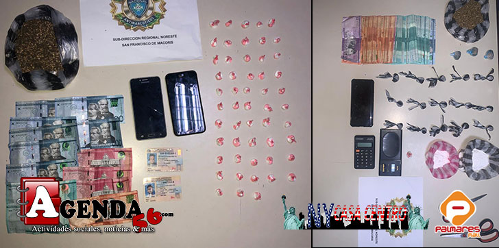 Los detenidos fueron identificados Henry Beato a quien se le ocupó la cantidad de 62.1 gramos de lo que se presume es marihuana y 52.1 gramos  de presumible Cocaína, mientras que a los nombrados Roberto Rosario y José Miguel Campos  le fueron ocupados 246.9 gramos de marihuana y 168.6 gramos de Cocaína.