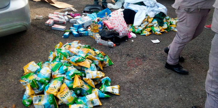 Al momento de su detención le fueron encontrados los artículos presuntamente robados, unos 279 paquetes de leche, 8 pastas dentales, 10 desodorantes, 2 galones de aceite, 2 botellas de whisky, 2 paquetes de galletas, 1 candado,1 paquete de cucharas plásticas, 2 paquetes de toallas sanitarias, 2 latas de leche condensada, 2 libras de arroz, 1 paquete de paletas, 1 cartón de leche, 1 paquete de ajíes, 2 pantalones Jeans, 3 blusas, 1 frasco de vainilla, 2 toallas, 1 sabana y una caja de bizcochos.