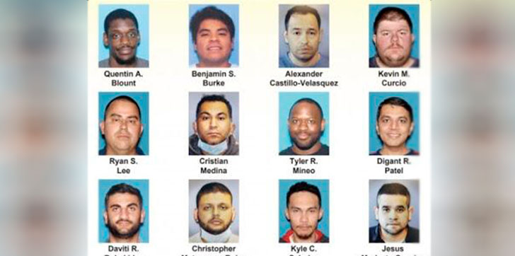 Los detenidos fueron identificados como Kyle Saludes de 34 años residente en Jersey City; Quentin Anthony Blount de 28 años residente en Bethlehem, PA; Digant Patel de 46 años; Tyler Mineo de 27 años residente en Bound Brook; -Christopher Matamoros Rojas de 26 años residente en Hillsborough; Alexander Castillo Velasquez de 34 años residente en Bound Brook; Jesús Modesto Sánchez de 29 años residente en Nueva York, NY; Benjamin Burke de 2años residente en Darien, CT; Cristian Medina de 34 años, residente en Raritan; Ryan Lee de 35 años residente en Trenton; Daviti Robakidze de 27 años, residente en Bound Brook y Kevin Curcio de 27 años, residente en North Brunswick.