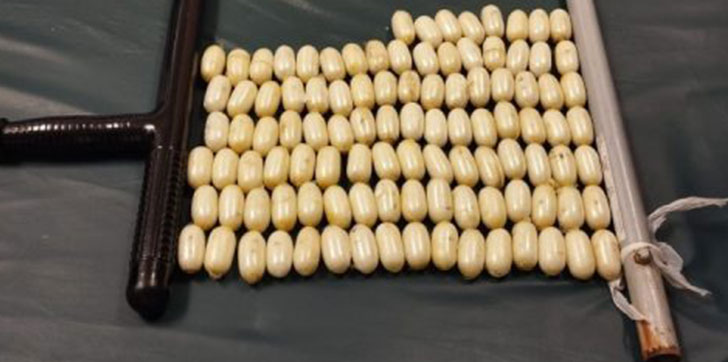 En medio del proceso, el hombre presentó síntomas que alertaron a los médicos especialistas, quienes procedieron a intervenirlo quirúrgicamente, extrayendo de su estómago, otras 71 bolsitas, para una total de 104, con un peso aproximado a (1, 360 gramos) un kilogramo y 360 gramos de la sustancia.
