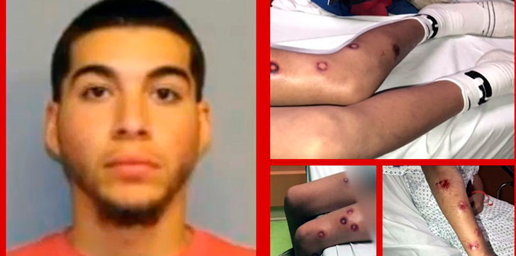 Las heridas provocadas al adolescente, lo desfiguraron virtualmente de la cintura hacia abajo, sus brazos y piernas parecen que fueron quemadas y perforadas por un objeto punzante.