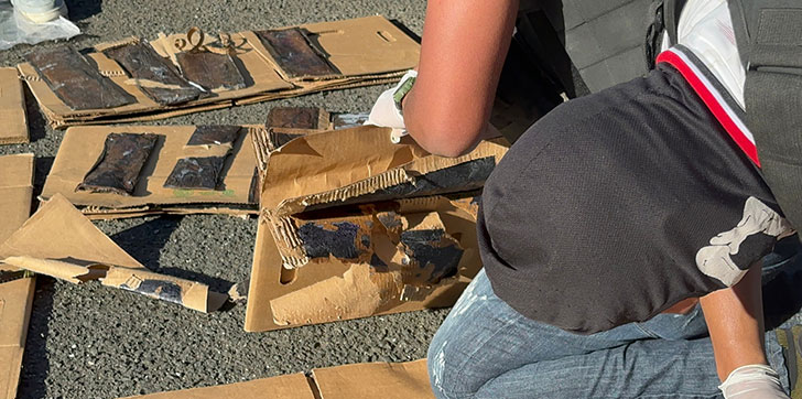 “Preliminarmente podemos afirmar que las láminas camufladas en las cajas de cartón, que se presumen son de cocaína, tienen cada una, un peso aproximado de entre 110 y 220 gramos”